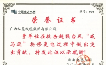 全國電線電纜產品質量監(jiān)管AA級企業,全國重合同守信用單位,廣西“二十五”電線電纜產業重點扶持企業,國家強制性產品CCC認證